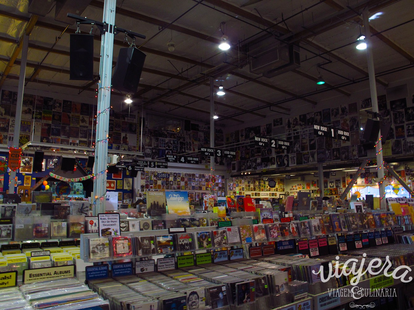 Chegando próximo ao número 6400 da famosa Sunset Blvd., já avistamos a loja. Ela é enorme, não tem como não ver. Então, deixamos nosso carro alugado no estacionamento gratuito, no subsolo e ao subir as escadas e entrar na loja, avistamos o paraíso: corredores sem fim de CDs, LPs, DVDs, pôsteres e muitas, mas muitas outras coisas. Chegamos por volta das 9h30 e até esquecemos de almoçar, para se ter uma ideia. Acabamos saindo de lá por volta das 15h.